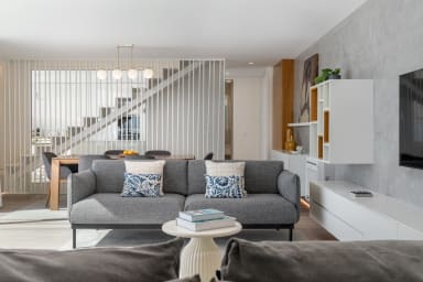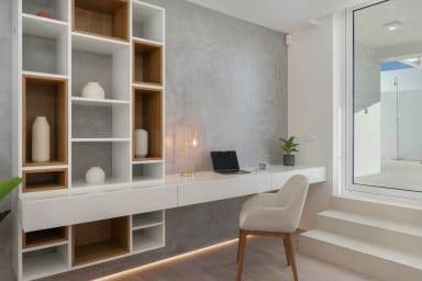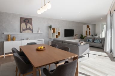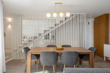 Auf der Etage -1 gibt es eine Küche mit Grillunterstützung, den Maschinenraum und einen Garten mit einem Essbereich, der den perfekten Raum für gesellige Momente im Freien schafft. Im Erdgeschoss befinden sich das Wohnzimmer, die Hauptküche und der Außenpool, die einen harmonischen Innen- und Außenbereich bilden, der sich ideal zum Entspannen und für gesellige Momente eignet.