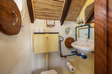 La maison dispose d'un salon confortable, d'une cuisine entièrement équipée et d'une salle de bains avec douche. Au premier étage, il y a deux chambres : une avec un lit double et une salle de bain attenante (sans douche), et une deuxième chambre avec deux lits simples, idéale pour les enfants ou les amis.